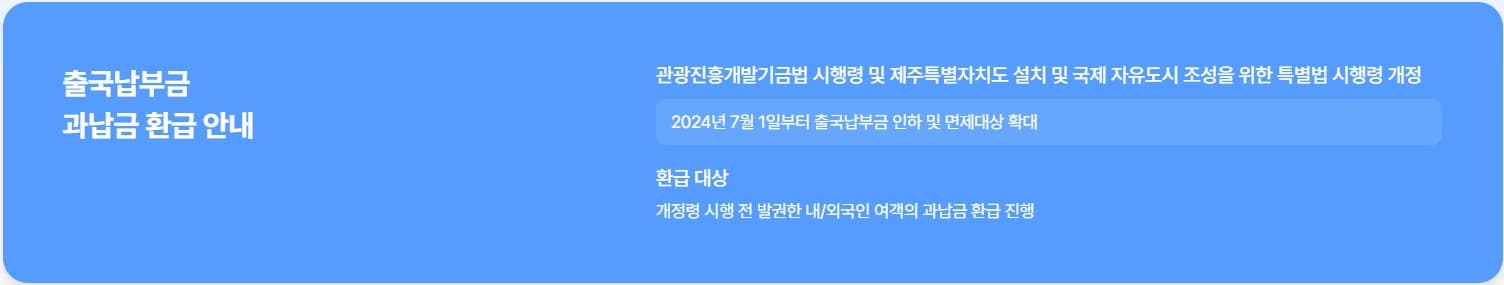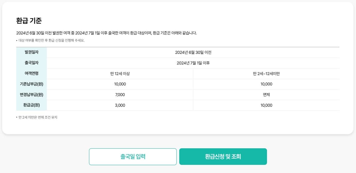- 성인 : 2024년 6월 이전 발권, 출국은 2024년 7월 이후 → 10,000원 납부 → 3,000원 환급