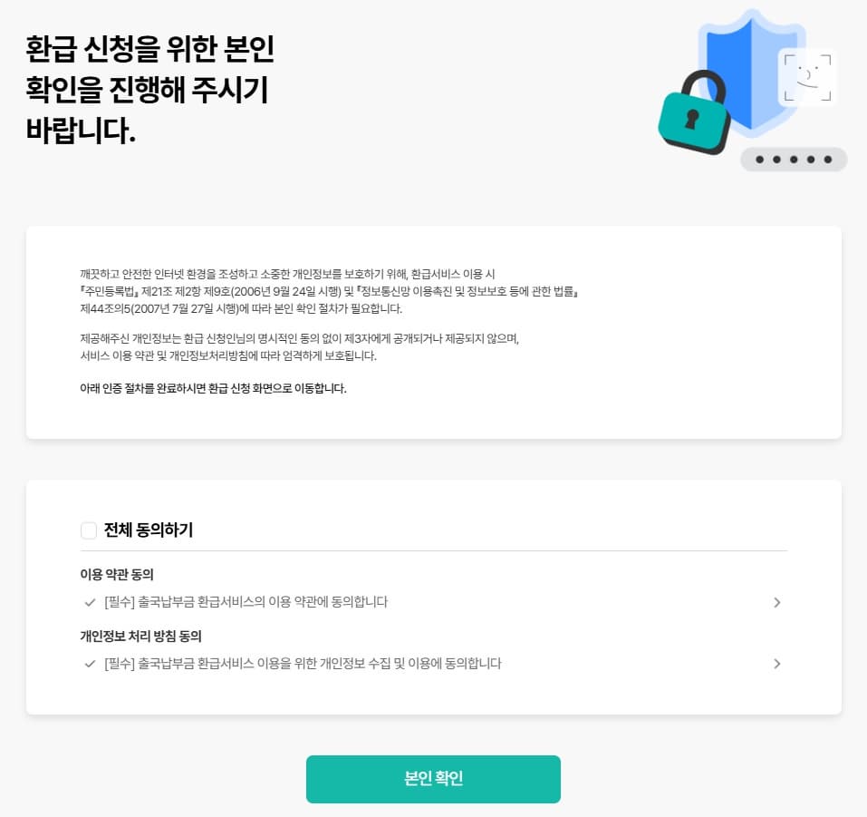 - 환급 계좌 입력 : 본인 또는 보호자 계좌